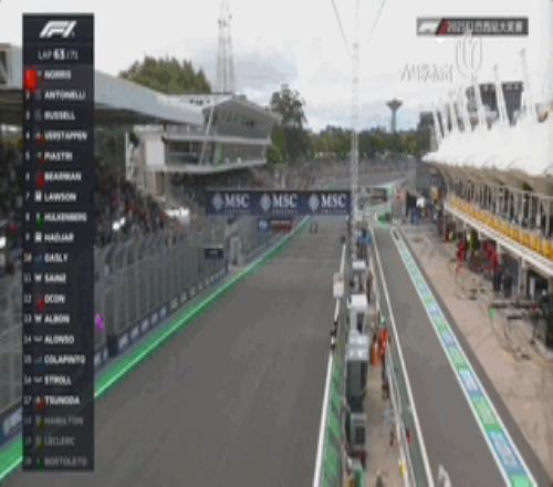 第6圈比赛重新开始!皮亚斯特里和勒克莱尔同时对安东内利发起进攻!然而一号弯又发生事故!皮亚斯特里和安东内利发生碰撞,安东内利挂到勒克莱尔,后者左前胎报废退赛……虚拟安全车又来了。与此同时,皮亚斯特里已经来到诺里斯身后。