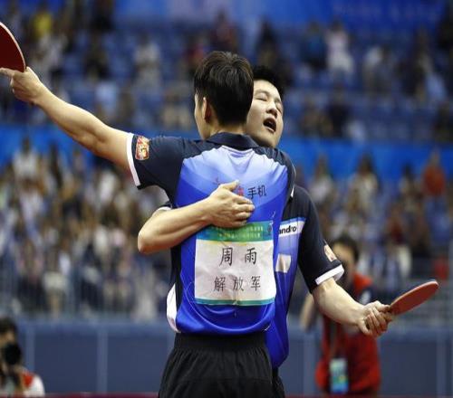 2017全运会乒乓球男双决赛,周雨/樊振东4比3战胜马龙/许昕。富田(摄影部)/中新社/视觉中国