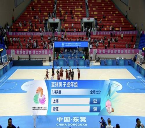 篮球男子成年组1/4决赛,浙江队几乎全场保持领先,而上海队始终处于追分的处境中。第三节,上海队利用余嘉豪出现体能问题的时机,主打中锋闫鹏飞连续得分,一度将比分追平。但浙江队在吴前的率领下,最后一节比赛中轮番发起冲击,最终以58-52战胜上海队,晋级四强。