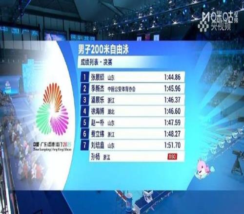 此前在400米自由泳打破世界青年纪录的张展硕,在本场比赛再次展现了自己的极佳状态,成功拿下了个人本届全运会第2金。