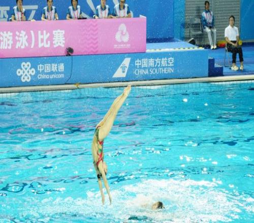 当天进行的是集体项目的集体技术自选、集体自由自选,天津、湖南、江苏、北京、广东、湖北、北京体育大学、上海、香港、四川等十支队伍在游泳池里展开角逐。