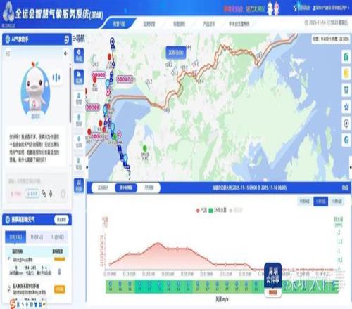 赛道旁的气象应急车内,深圳市气象局首席预报员陈训来博士正紧盯着短临预报决策支持平台上跳动的数据——来自生物舒适度观测仪的WBGT指数,以及香港加密观测点传来的深圳湾大桥段风力数据,在此刻汇于一方屏幕。