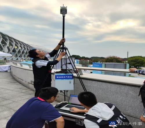 深圳湾体育中心附近的便携式自动气象站。