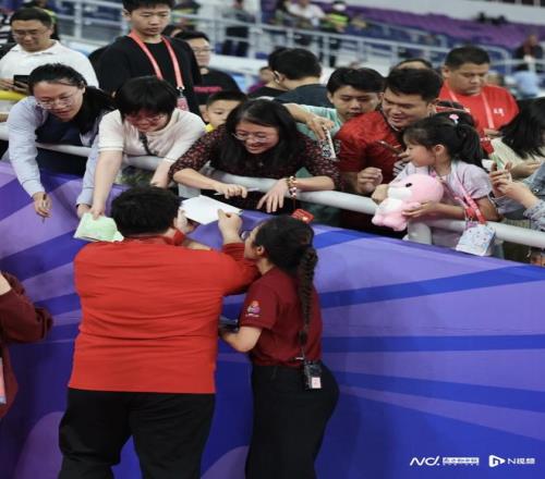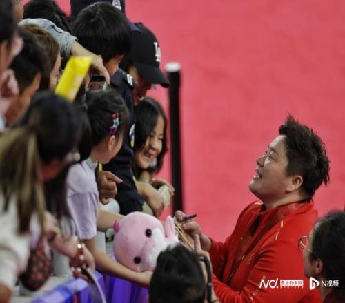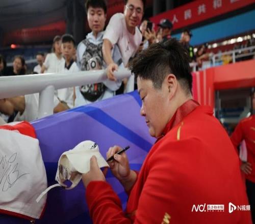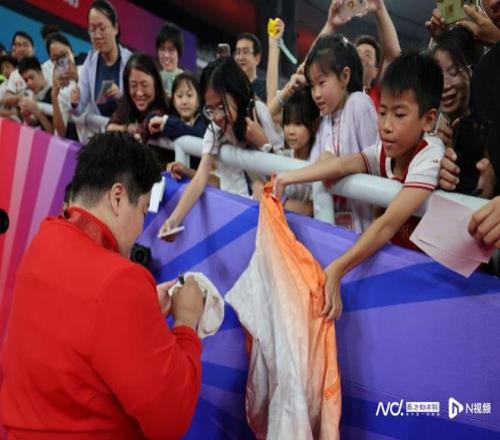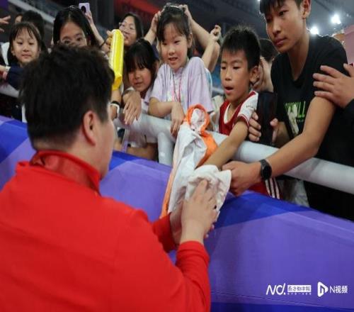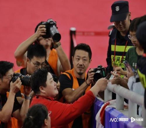 作为当晚最重磅的明星选手,在颁奖礼后,巩立姣与看台上诸多粉丝亲密互动,对孩子们提出的签名要求各种满足。