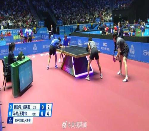 据央视新闻消息,第十五届全运会乒乓球男团1/4决赛,马龙、王楚钦、黄友政所在的北京队战胜袁励岑、侯英超、徐海东所在的辽宁队,晋级半决赛。