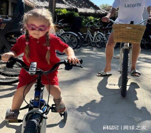 最后来猜一猜认一认。下面这张图片是一位球员的女儿在骑车。不作提示,您能认出跟在她后面的爸爸是谁吗?