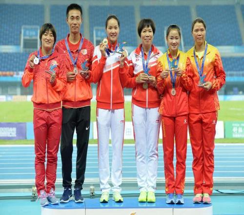 天津全运会上,田玉梅教练就曾陪着韦永丽站上女子百米最高领奖台。