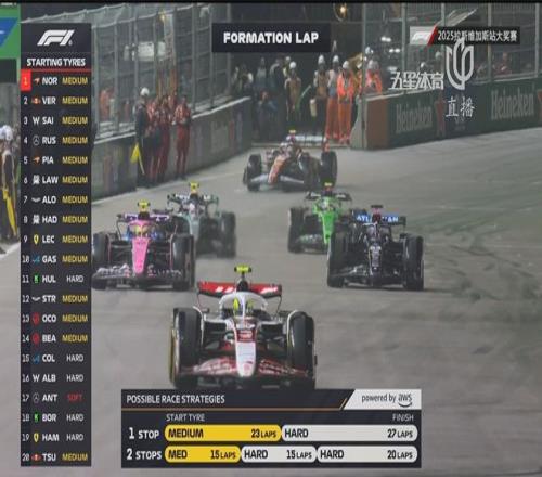 前十位车手均使用黄胎起步,后十位车手除了斯特罗尔、奥康和比尔曼使用中性胎、安东内利使用软胎之外,其余车手都使用硬胎起步。