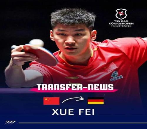 北京时间今天,德国乒乓球甲级联赛球队巴特柯尼希斯霍芬乒乓球俱乐部官方宣布,中国球员薛飞加盟球队。