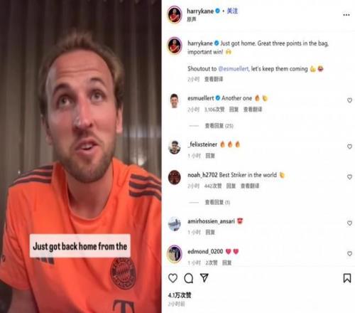 他也在赛后通过社媒庆祝胜利,并配文:“刚刚回家。精彩三分入袋,一场重要的胜利!回应穆勒,让我们期待更多(帽子戏法)到来。”穆勒也现身评论区并惊叹:“又一个(帽子戏法)!”