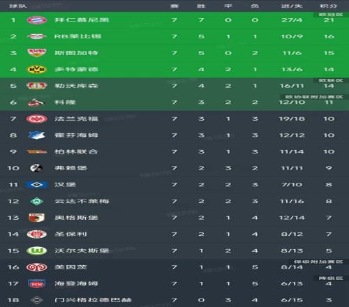 北京时间10月20日,德甲第7轮所有比赛在昨天已经全部结束,我们一起看看最新积分榜变动!