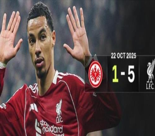 半场结束前,利物浦利用角球再进一球。上半场结束,法兰克福1-3落后,看台上一片寂静。下半场,利物浦再进2球。最终,法兰克福1-5惨败。全场比赛,法兰克福的控球率只有35%,但他们一直在努力进攻。