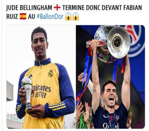 贝林厄姆位列第23,而法比安仅排在第24位。这一结果立即在巴黎激起强烈不满,不少媒体和球迷直言:“这简直是个笑话!”