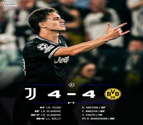 北京时间9月17日,欧冠联赛阶段首轮比赛,尤文图斯主场4-4战平多特蒙德。本场比赛,两队在下半场狂轰8球。而多特蒙德球员更是在场上爆发内讧:后卫本塞拜尼主罚点球,与队友吉拉西爆发冲突。这也导致多特蒙德在4-2领先的情况下,最后时刻大崩盘:补时阶段弗拉霍维奇挺身而出,一射一传帮助尤文奇迹扳平比分!最终双方4-4握手言和。