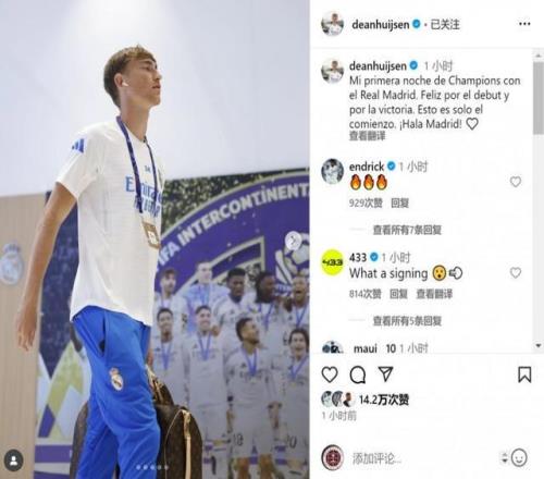 此役赫伊森为皇马踢满全场,赛后他在社交媒体上写道:“我在皇马经历的首个欧冠之夜,为首秀和胜利感到高兴,这只是开始,Hala Madrid!”