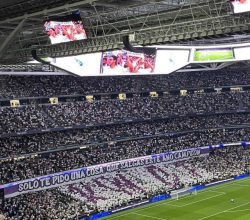 据记者Mario Cortegana报道,皇马球迷拉出了横幅,上面写着:只有一个要求,今年成为冠军。