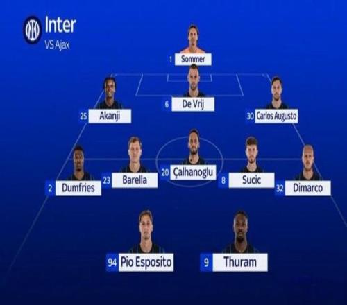 后场都是正常的对位轮换,迪马尔科首发出战,奥古斯托上一场轮换左翼卫后再轮换出任左中卫。阿切尔比的体能和身体已经难以支持他连续高强度作战,而更加年轻的德弗里值得更多的出场时间!劳塔罗和巴斯托尼都是俱乐部、国家队比赛连轴转,上一场国家德比发挥不佳也跟连续比赛消耗过大不无关系,所以本场比赛轮换可能是更好的选项。