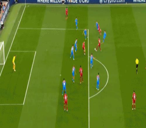伤停补时阶段,马竞右路踢出流畅配合,拉斯帕多里横敲,略伦特跟上捅射,打穿科纳特的小门,阿利松扑救不及,马竞扳回一球,1-2!
