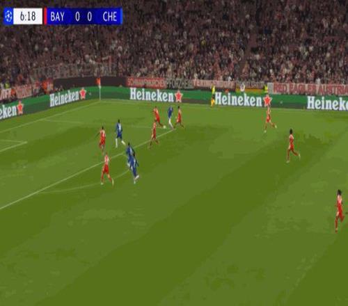 第7分钟,切尔西发动快速反击,恩佐·费尔南德斯接到帕尔默横传在小禁区正面的射门被基米希封堵。