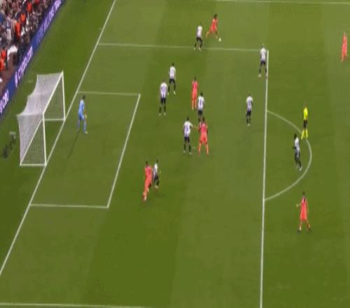 第90分钟,纽卡踢出流畅配合,吉马良斯直传,墨菲右路传中,戈登抢点推射命中,主队扳回一城,1-2!
