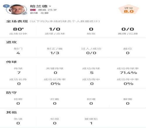 雷速体育9月19日宣 在今日凌晨进行的欧冠联赛首轮,曼城主场对阵那不勒斯。前锋哈兰德首发出场80分钟,打入全场第一粒进球,帮助球队首开纪录,并解锁了自己的欧冠50球里程碑。