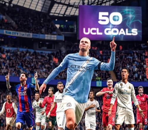 新赛季的欧冠首轮比赛曼城对阵那不勒斯,坐镇主场的曼城2-0轻松取胜,哈兰德也再次收获进球,这也是他在欧冠打进的第50粒进球,做到这一点仅仅只用了49场比赛,场均进球率超过1球,这样恐怖的进球效率也让哈兰德超越了范尼,成为了欧冠历史上最快打进50粒进球的球员。在赛后接受采访的时候,瓜迪奥拉也被问到哈兰德是否能够打破C罗的进球纪录,他表示:“只要他不受伤,再踢10-12年,如果保持这种进步完全有可能。”