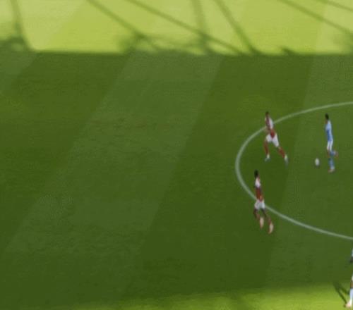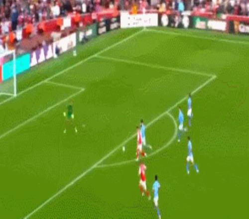 比赛刚开始9分钟,阿森纳就丢球了!曼城踢出犀利的反击。赖因德斯带球推进到前场,随后把球分给右侧前插的哈兰德。哈兰德停球后直接低射远角,球进了!瓜迪奥拉狂欢!这次反击简单犀利。曼城取得梦幻般的开局。第20分钟,赖因德斯外围尝试一脚远射,但踢得有点正,力量也不足。拉亚倒地把球没收。6分钟后,赖斯角球直接射门,多纳鲁马把球击打出去。