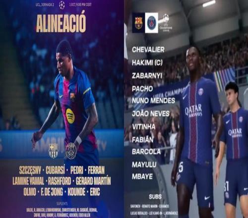 两队此战均有所轮换,巴萨派上费兰-托雷斯单箭头,身后是亚马尔、奥尔莫和拉什福德。巴黎更是半主力阵容,巴尔科拉、马尤卢和姆巴耶组成进攻三叉戟,金球先生登贝莱未进大名单。