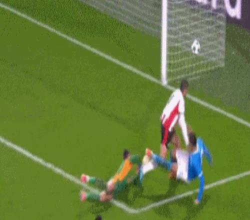 埃因霍温6-2大胜那不勒斯的比赛,那不勒斯前锋卢卡倒地之后指着自己的脑袋,表情非常愤怒,这被认为是嘲讽裁判,吃到直红!