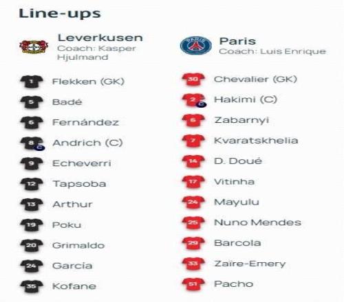 北京时间10月22日03:00,欧冠联赛阶段第3轮展开较量,巴黎圣日耳曼客场对阵勒沃库森。赛前双方首发公布。