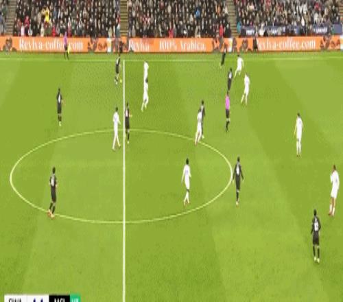 第41分钟,狼队后卫费尔·洛佩斯“送礼”,埃斯特旺挑射为切尔西再进一球,半场结束,切尔西以3比0狼队。