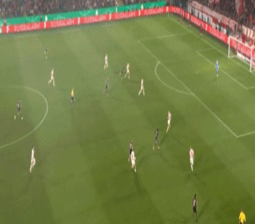 第30分钟,主场作战的科隆率先得分,在一个角球战术中,禁区里的阿赫高高跃起,头球破门,帮助科隆打破僵局。