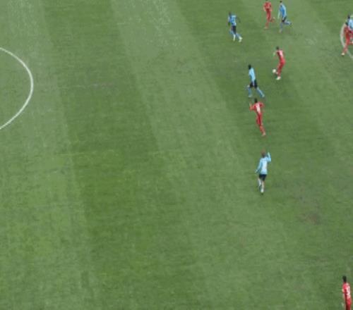 上半场补时第5分钟,王献均禁区内手球,主裁判回看慢镜头之后判罚点球,吴曦主罚点球破门,2比0!