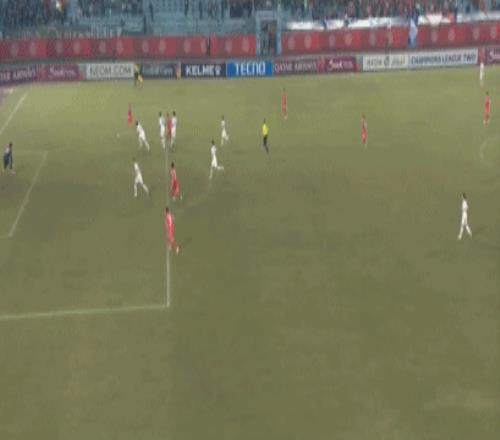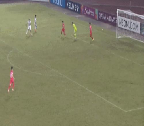 比赛的第11分钟,菲利佩-阮解围失误,球打在林良铭的身上反弹入网,1比0!