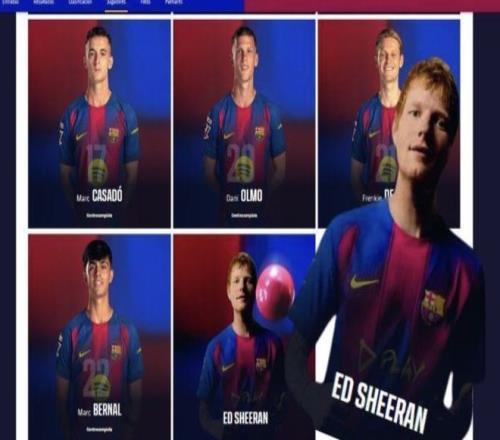 雷速体育10月22日宣 本周末西班牙国家德比前,巴萨官网出现了一位出人意料的“新援”——英国知名歌手埃德·希兰(黄老板)。他被列入了球队一线队名单中,位置为中场。
