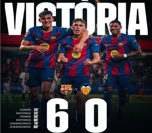 莱万宝刀未老,费尔明未来可期,拉菲尼亚持续输出,一场属于替补、属于老家伙和年轻人、也属于纪录的夜晚。巴萨用一场6比0宣告球队如今依旧强势,而瓦伦西亚队现在唯一想要做的事,就是祈祷短时间内不想再遇到这支红蓝军团!!!