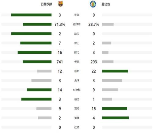 胜券在握的巴塞罗那,在接下来近半个小时的时间,仍然把皮球牢牢控制在自己的脚下,但攻势明显有所缓解,更多以控制为主,虽然没有进一步扩大领先的优势,但是防守端也没有给赫塔费任何的机会,如愿以偿在主场零封对手,轻松将三分收入囊中。