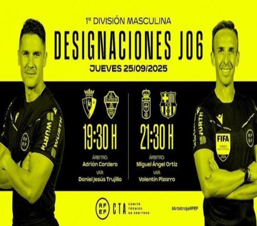 直播吧9月24日宣 北京时间9月26日,2025-26赛季西甲联赛第6轮将进行两场比赛的较量,西班牙足协官方今日公布了两场比赛的裁判安排,奥蒂兹执法巴萨客战皇家奥维耶多。