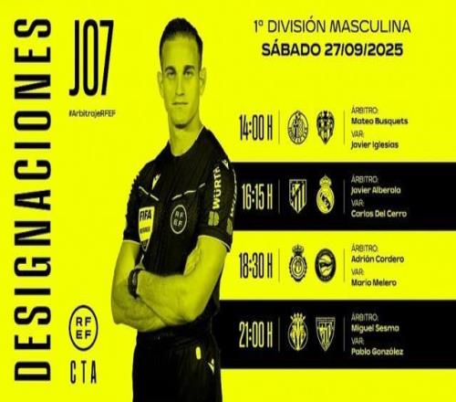 直播吧9月26日宣 西班牙足协官方公布了西甲联赛第7轮部分场次的裁判安排,其中,执法马德里德比焦点战的是哈维尔-阿贝罗拉-罗哈斯。