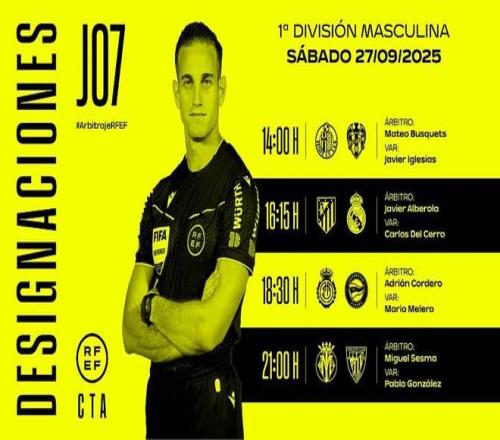 北京时间9月26日,西班牙足协公布了周六的4场西甲裁判人选,哈维尔-阿尔韦罗拉将执法马德里德比大战。