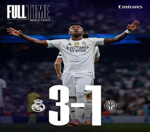 比赛结束,皇家马德里在主场击败比利亚雷亚尔!