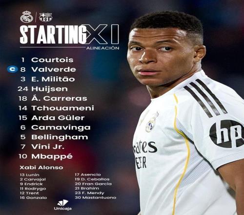 北京时间今晚23:15,皇马将迎来西甲第10轮主场对阵巴萨的比赛,目前双方的首发阵容已经公布。