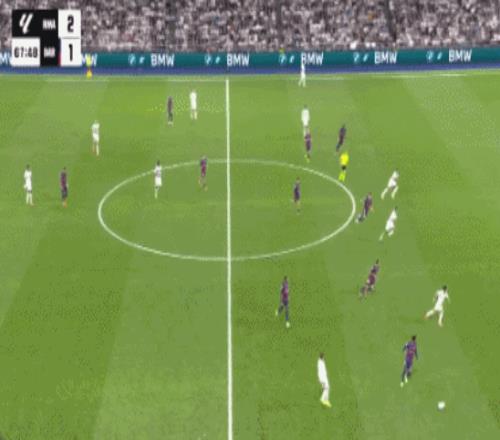 第12分钟,VAR介入之后再度做出了改判:姆巴佩外围直接一脚外脚背爆射入网,皇马全队疯狂庆祝,随后主裁判听从视频裁判的意见之后,示意姆巴佩越位在先,进球无效,巴萨再度逃过一劫。