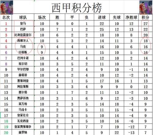 积分榜方面,皇马榜首大战击败巴萨,赢得国家德比之后,将和巴萨的差距拉大到5分。昨天比利亚雷亚尔赢了球,巴萨第2的位置都不是很稳,他们只领先黄潜2分。马竞和贝蒂斯少赛一场的情况下,被西班牙人超过,分别跌到第5,第6。