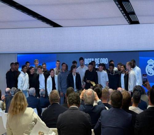 2024-25赛季欧洲金靴奖颁奖仪式在伯纳乌球场进行,皇马前锋姆巴佩上赛季以31粒西甲进球荣获这一奖项。