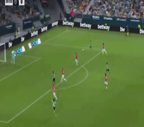 第34分钟,安东尼再秀左脚技术。贝莱林传球,安东尼大禁区线上左脚兜射,打出精彩世界波!