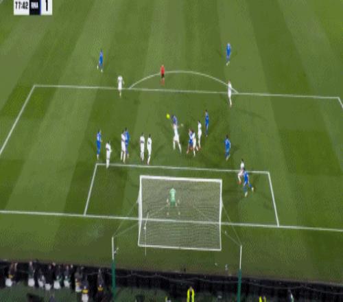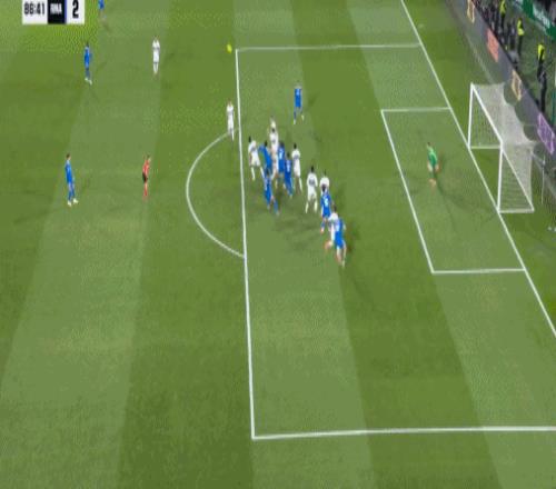 好不容易才扳平比分,7分钟后皇马后防却又遭重击,埃尔切中后场快速反击,内托中线前策应头球摆渡往左前方一顶,罗德里格斯接球高速往前推进,禁区弧顶处连续晃晕阿森西奥后左脚大力推射,皮球直入球门右下死角,埃尔切2:1再次取得领先。仅仅再过2分钟,皇马前场倒是做出了快速回应,皇马前场左侧45度角任意球机会,赫伊森禁区右侧后点抢点头槌摆渡,贝林厄姆小禁区前沿抢点迎球凌空扫射,维尼修斯和门将在门前抢到一块,皮球被挡向右侧,眼见就要出底线,姆巴佩反应很快,高速跟进抢在皮球出线前将球勾回来,贝林厄姆拍马赶到门线前将球挡入半空门,皇马2:2绝平埃尔切。