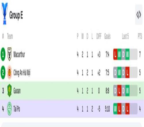 本轮战罢,国安1胜2平1负超越和富大埔,摆脱垫底,与河内公安同分,因为净胜球的劣势暂时排名第三。
