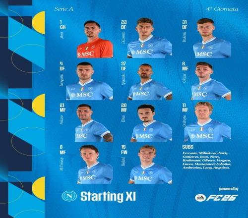 直播吧9月23日宣 意甲第4轮比赛,那不勒斯将在主场迎战升班马比萨。目前,那不勒斯已经公布了本场比赛的首发阵容,德布劳内、麦克托米奈领衔,霍伊伦出战。