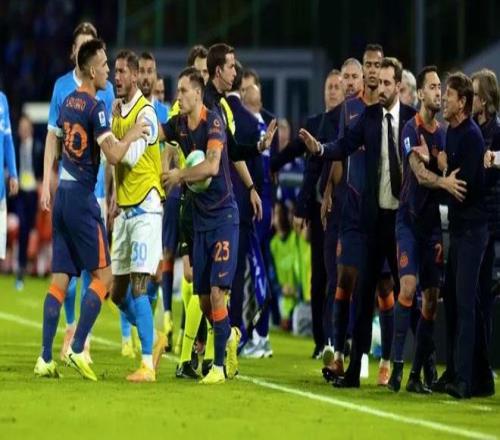 从比赛回放来看,孔蒂先是与邓弗里斯发生了言语冲突。随后劳塔罗冲了上来与孔蒂以及那不勒斯教练组对喷。